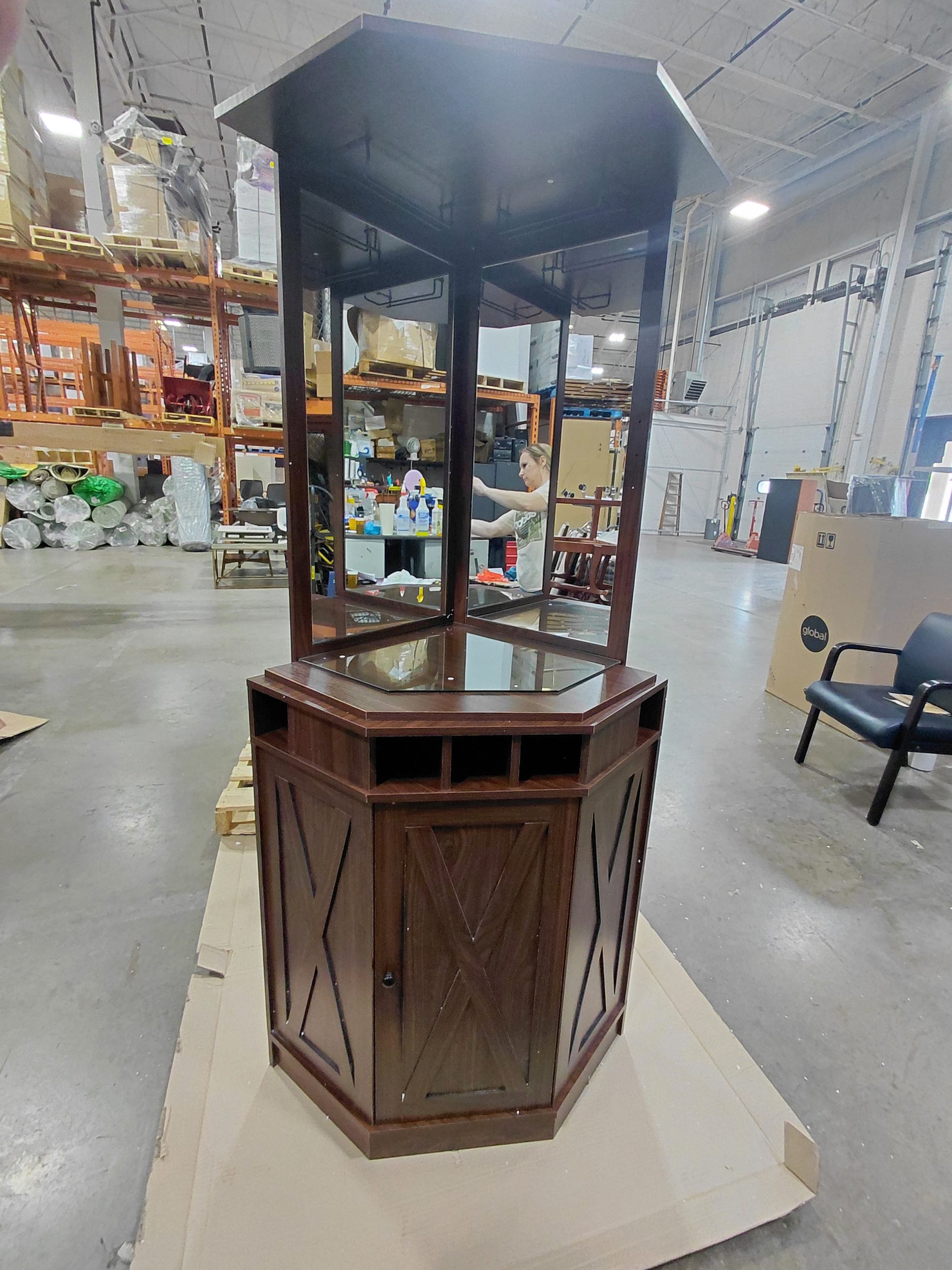 Sand & Stable Adam 72″ Height Corner Bar with Wine Storage, Mahogany