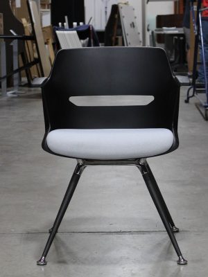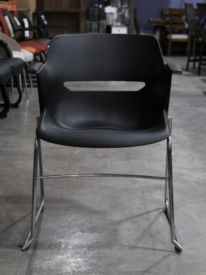 Global Moda Four Legged Armchair with Upholstered Seat & Laminate Armcaps, “Black” & “Aluminum”
