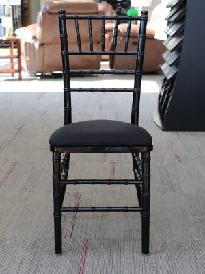 Hercules Series Wood Back Chiavari Chair with Cushion, “Black”