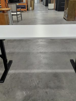 Global “Dufferin” Height Adjustable Single Ped Desk with Matching Table