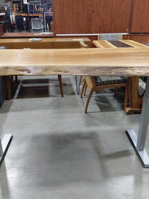 Custom Live Edge Wood Height Adjustable Table, Cherry/Silver