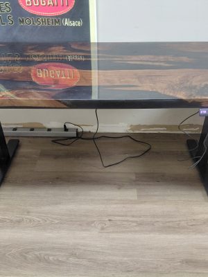 Custom Wood Height Adjustable Table with Resin Detail, Black/Walnut