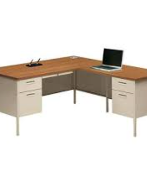 Hirsh Industries Steel Desk – L Shape w/Right Return – 66″ x 72″ – Putty/Oak – HL10000 Series