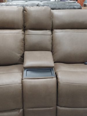 Flexsteel Artemis Power Reclining Sofa with Console, Power Headrests, Lumbar, Heat & Massage “Cappuccino”