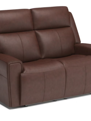 Flexsteel Barnett Power Reclining Loveseat with Power Headrests and Lumbar, Timber Brown Leather
