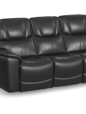 Flexsteel Crew Raven Leather Power Reclining Sofa with Power Headrests & Lumbar, Black Raven
