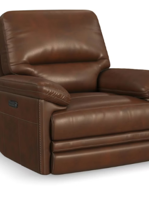 Flexsteel Clive Leather Power Recliner with Power Headrest & Lumbar, Bison
