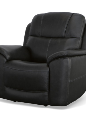 Flexsteel Crew Leather Power Recliner with Power Headrest & Lumbar, Raven