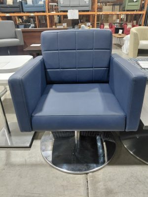 Global Jeo Self-Centering Lounge Chair, Pedestal Base, Dark Blue Leather