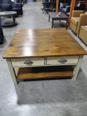 Used Square Coffee Table with Drawers, Barn Linen Wood
