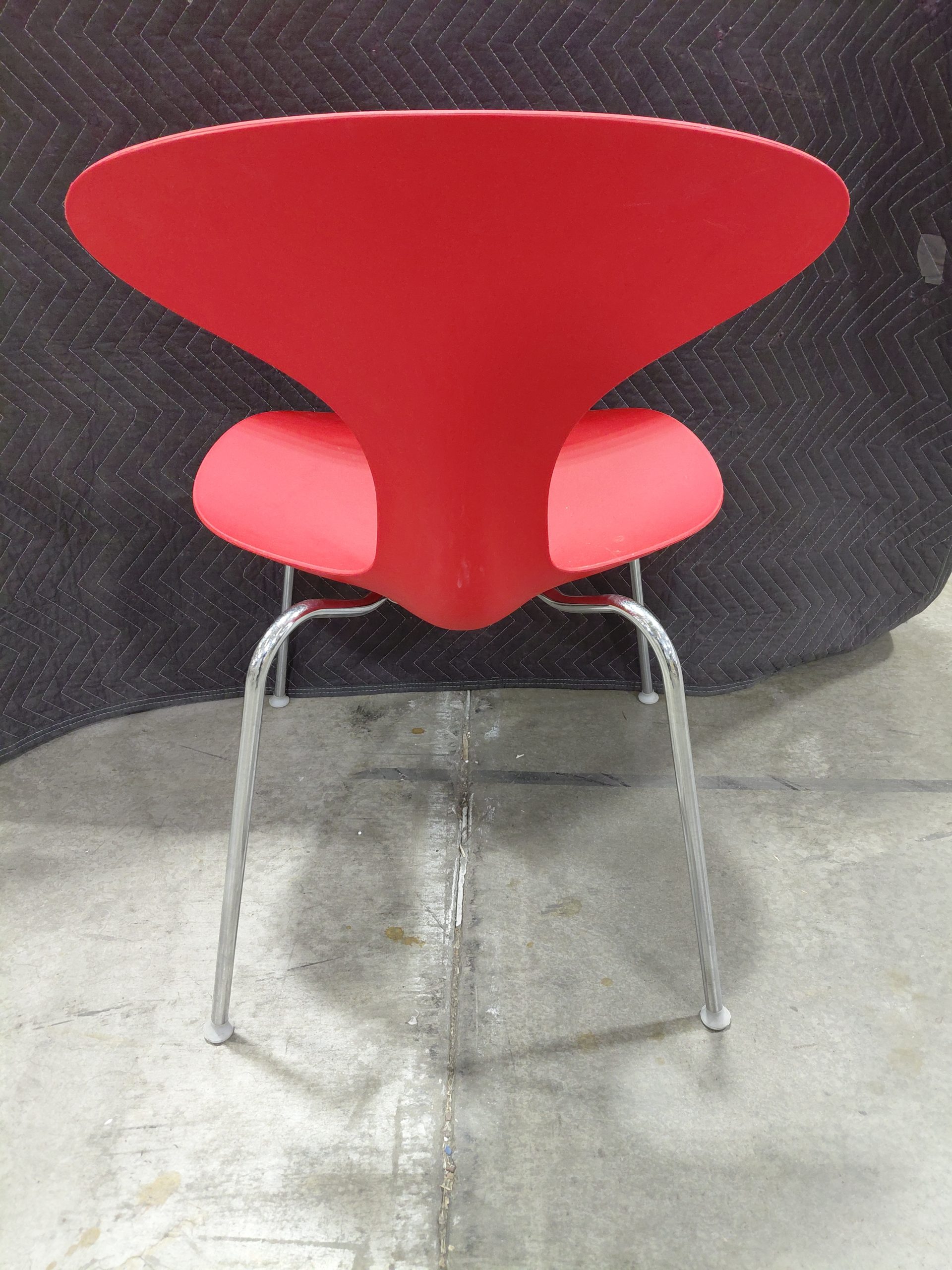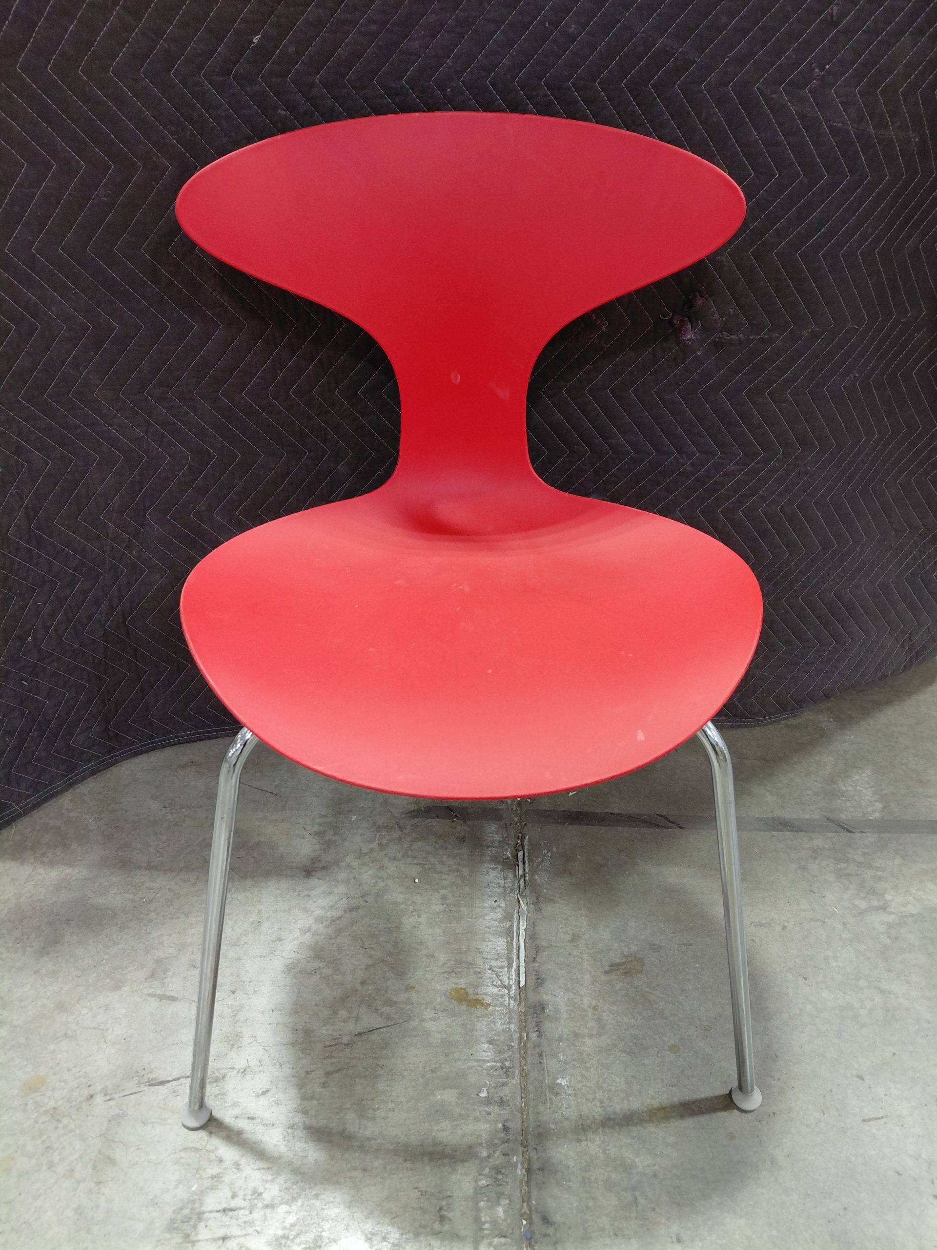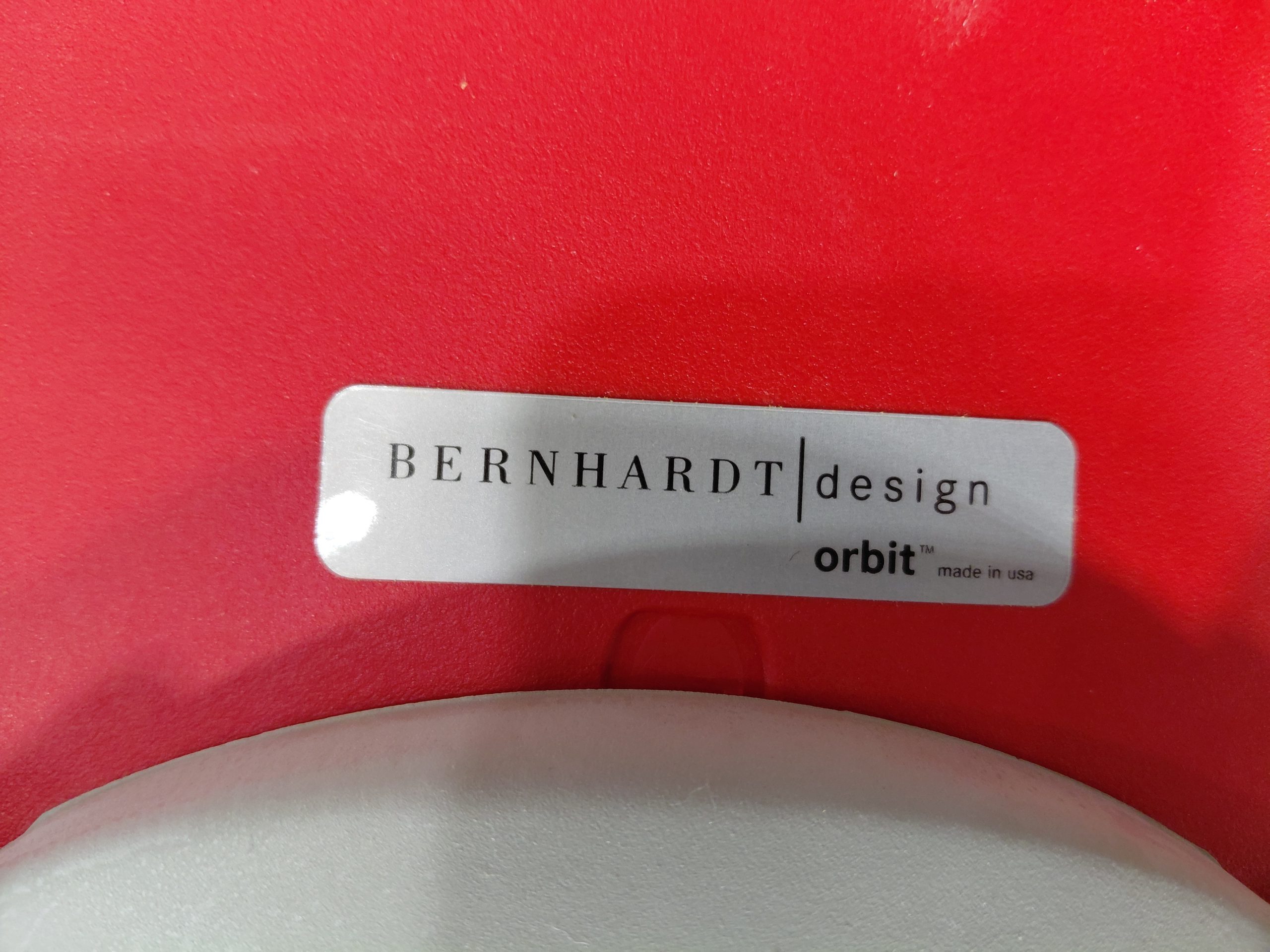 Listed for sale is a set of (the price listed is for one chair, but multiple chairs are available) Orbit chairs in red plastic with chrome legs designed by Ross Lovegrove and produced by Bernhardt design. The chairs were produced circa mid 2010s. This is a classic design by Ross Lovegrove. The condition overall is excellent with some light wear from use.