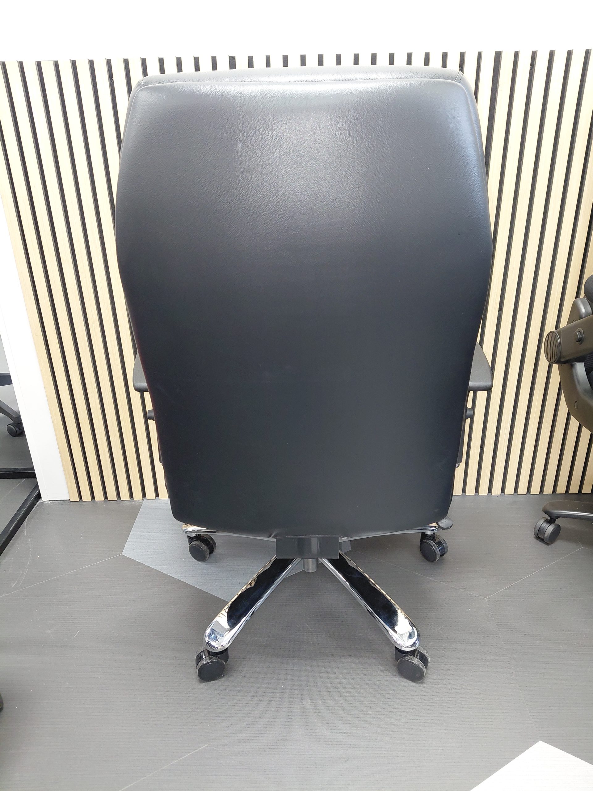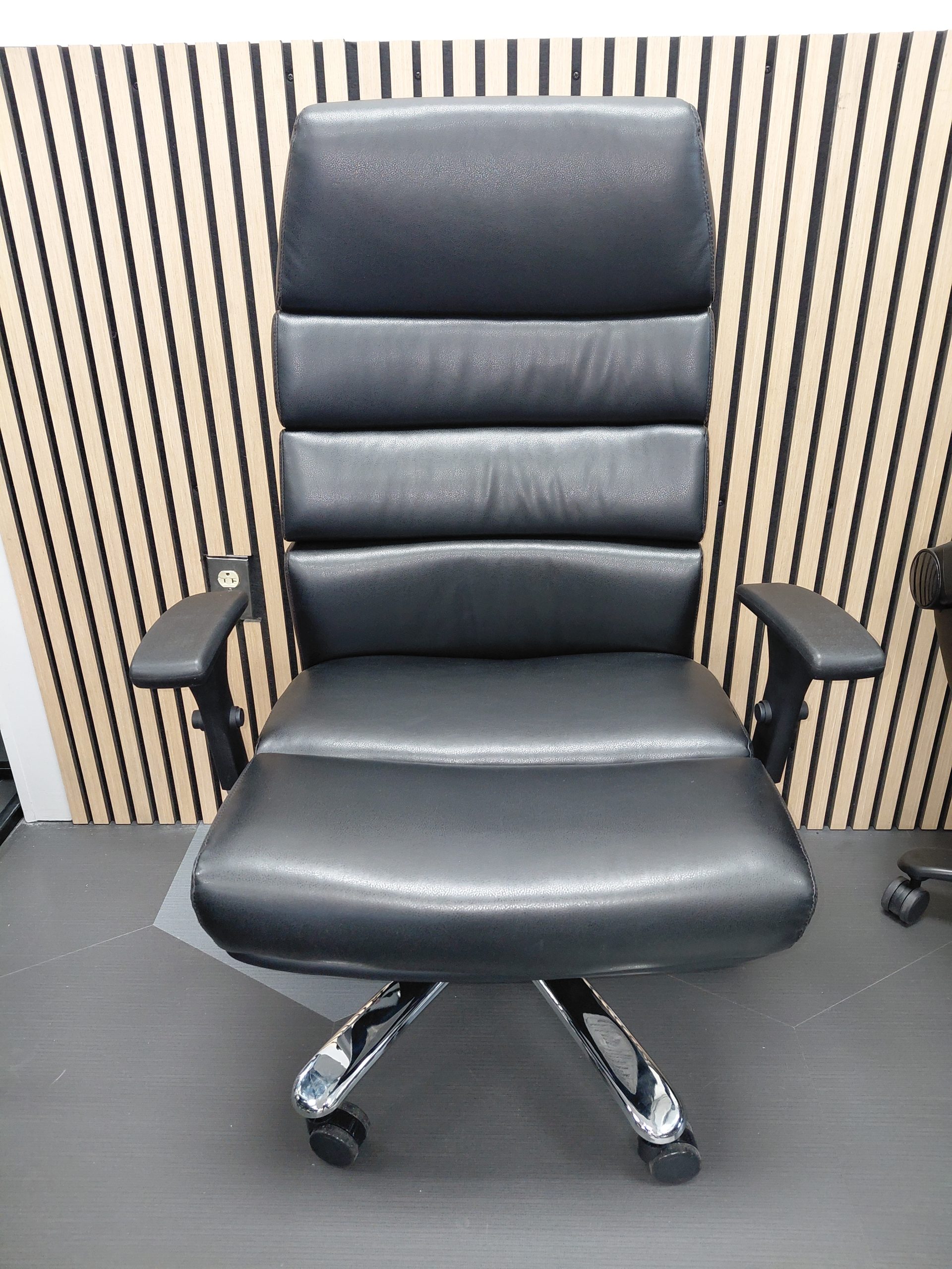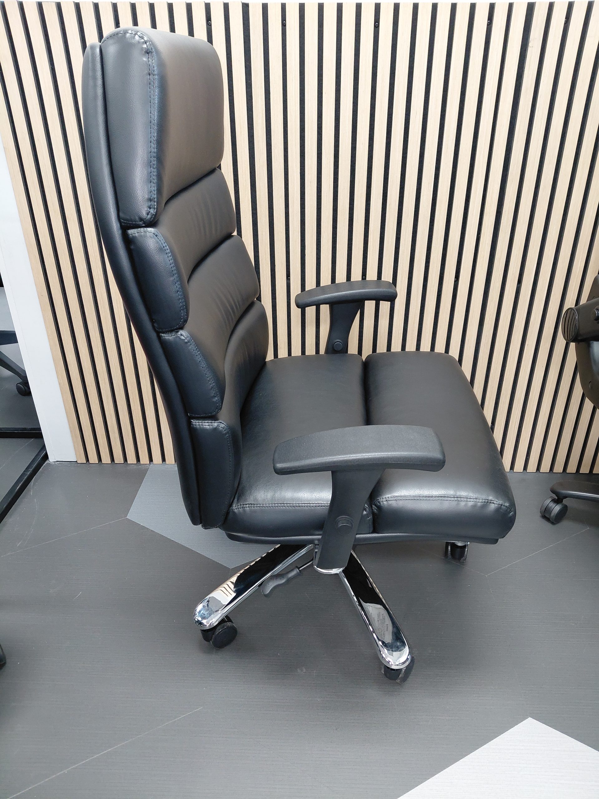 - Height-adjustable arms with chrome accents