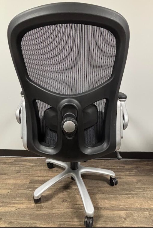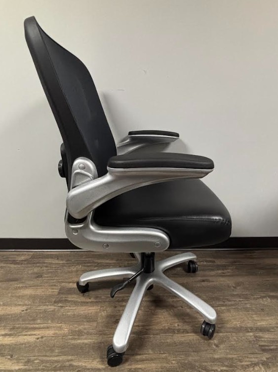 • Thick padded contour black bonded leather seat & mesh back with adjustable lumbar support