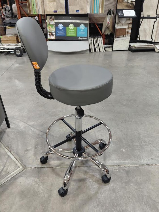 his medical stool from Boss is upholstered in durable Grey antimicrobial vinyl and equipped with a 4-inch thick molded foam seat. The Be Well Medical Spa Professional Adjustable Stool provides durability and comfort. It is attached with an easy-to-reach gas lift seat height adjustment lever, providing a vertical range of 6 inches to suit your personal comfort and work environment. This stool has a back cushion that provides comfortable back support through extended periods of work and a removable foot rest. The base provides stability with a chrome finish. The hooded double wheel casters make it easy to move and shift directions.