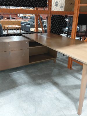 Global Corby 78″ Peninsula Table with Low Storage Credenza, “Almond Cherry”