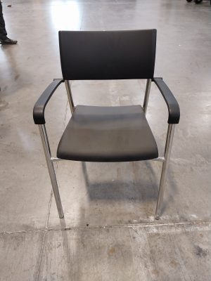 Global Moda Four Legged Armchair with Upholstered Seat & Laminate Armcaps, “Black” & “Aluminum”