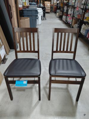 Stakmore Wood Folding Chair with Bonded Leather Seat, Espresso, 2-pack