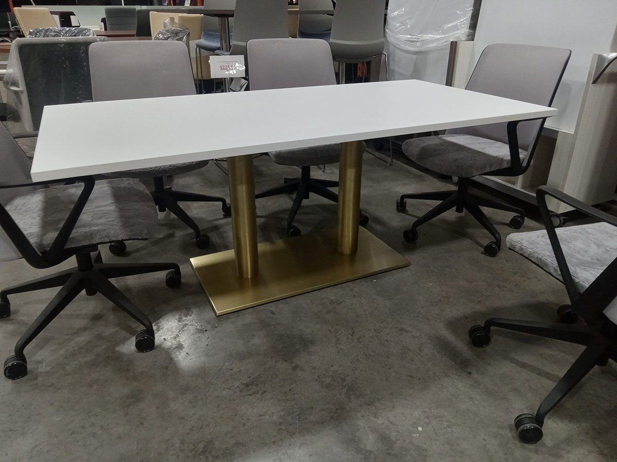 Global Swap 72″ Rectangular Conference Table 72″W x 36″D x 28.5″H “White/ Satin Brass Base”
