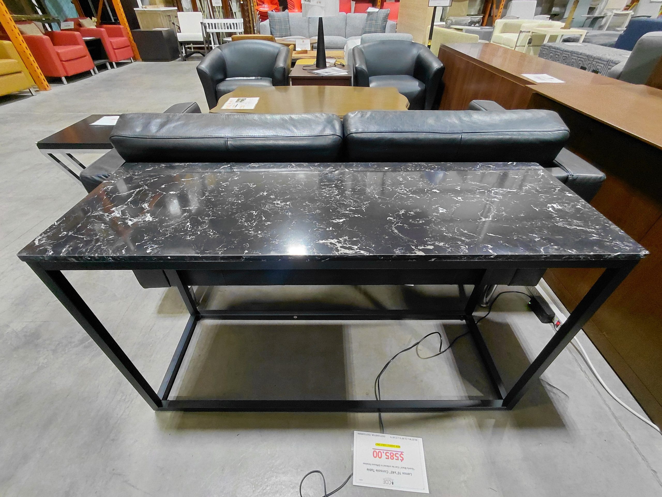 Lenox 16″ x 48″ Console Table with Black Metal Base, Quartz Black Top